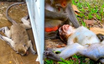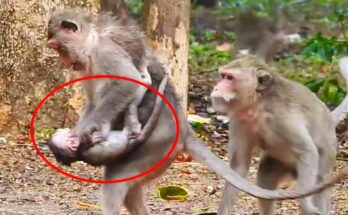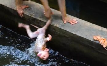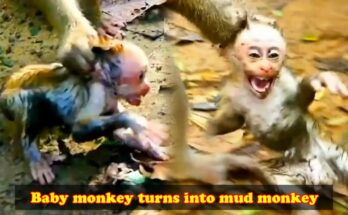 O.M.G…! The little monkey looks so scared when Mom pulls him toward the water In the quiet jungle, a touching and dramatic scene unfolded between a mother monkey and her …