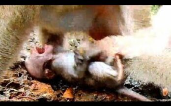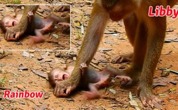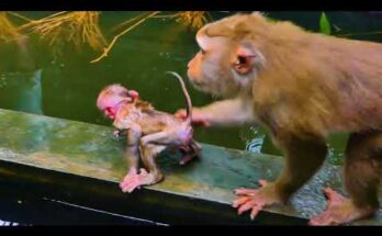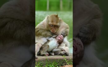 The mother monkey wanted her baby monkey to learn to walk, but the baby monkey was not satisfied In the heart of the jungle, the bond between a mother monkey …