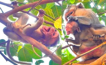 In this touching and emotional scene, viewers witness the heartbreaking struggle of a tiny baby monkey who is simply seeking the comfort of milk and sleep from its mother. Exhausted …