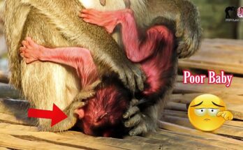 Crying loudly miserable baby monkey Ting Ting got injured Read More