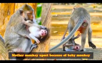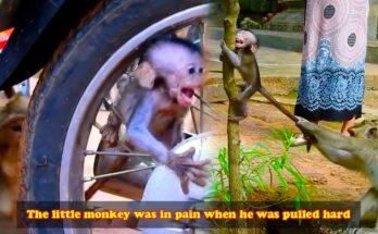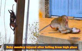 A heartbreaking scene unfolds deep in the wild forest — a newborn baby monkey has just come into the world, fragile, tiny, and still trembling from birth. Its soft cries …