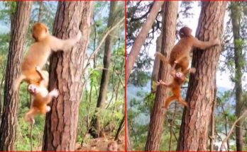 The title “TPoor baby monkey fell from above” captures a moment of sudden panic and heartbreak — a tiny life separated from safety in the blink of an eye. In …